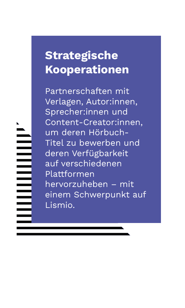 “Lismio hat sich durch Werbung in den sozialen Medien zunehmend zu einem Treffpunkt und einer Plattform für Hörbuchautor:innen, Verlage und Sprecher:innen entwickelt.[…]