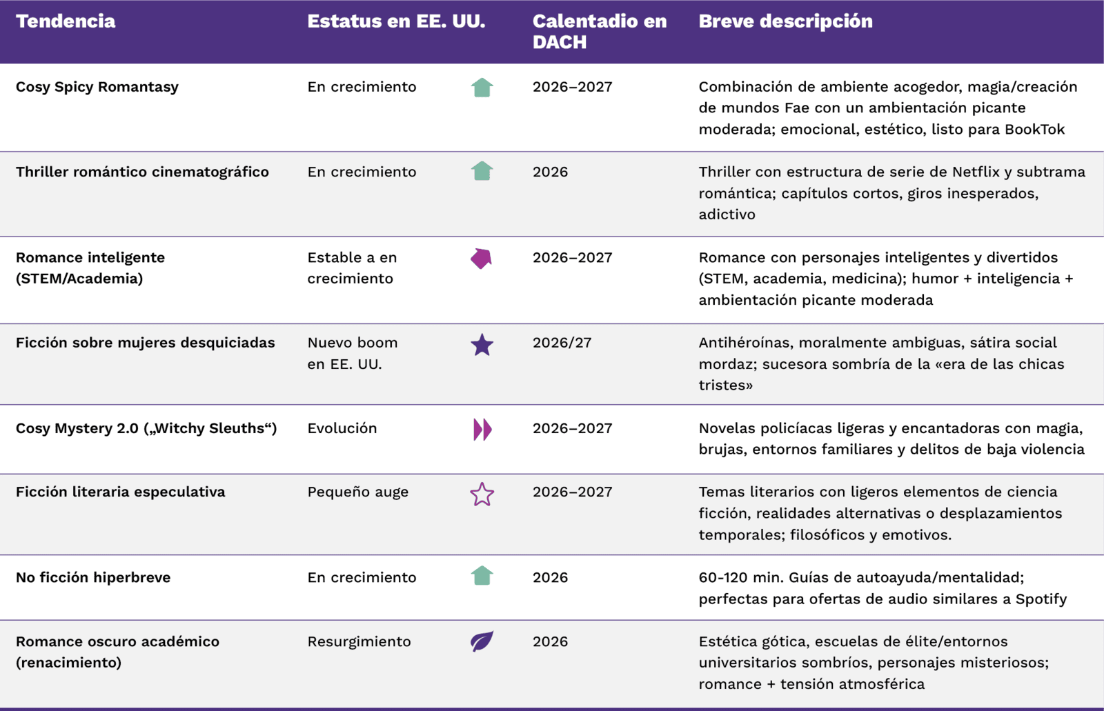 Basándonos en las tendencias actuales del mercado estadounidense, se puede suponer que las siguientes tendencias de género ganarán relevancia en el mercado DACH durante el año actual y el próximo: